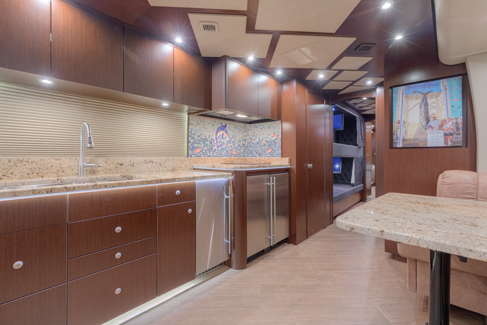 Full Kitchen in Bay 1 Including Norcold Refrigerator & Suwannee SGC-28 Three-Burner Gas Grill